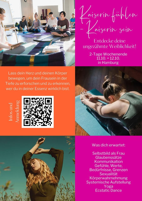 Was? Bei diesem zweitägigen Workshop beschäftigen wir uns mit den genetisch, kollektiv konditionierten Männerbildern in deinem Unterbewusstsein und zeigen dir Methoden, um sowohl die Glaubenssätze, Muster, Strategien, Verhaltensweisen im Umgang mit Männern zu erkennen als auch, wie du diese, auf Wunsch, spielerisch verändern kannst.