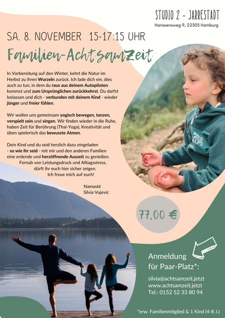 Dein Kind und du seid herzlich eingeladen, so wie ihr seid, mit mir und den anderen Familien eine herzöffnende und fröhliche Auszeit zu genießen. Meldet euch jetzt an! Ich freue mich auf euch.
